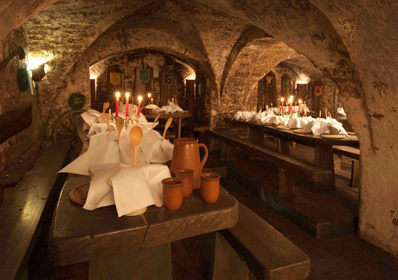 Eine der eindrucksvollsten Arten zu feiern, ist das Ritteressen in den historischen Kellerräumen unseres Schlosses.